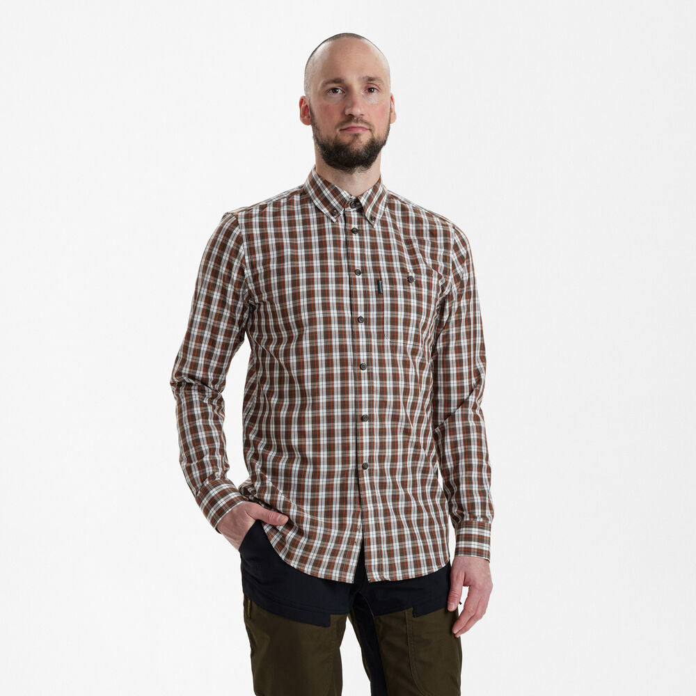 Deerhunter Jeff skjorten i en let polyester og bomuldsblanding er uundværlig til foråret og sommeren. Den har et klassisk ternet mønster, en enkelt brystlomme samt en button down-krave og er både stilfuld og alsidig til hverdag.