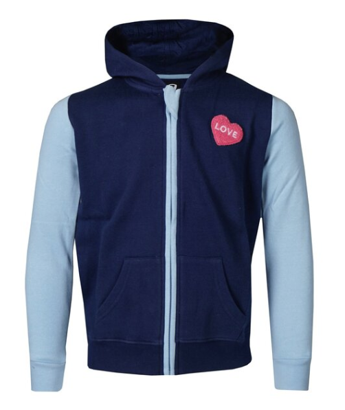 Foran på brystet er der et flot hjerte og bagpå et flot print.