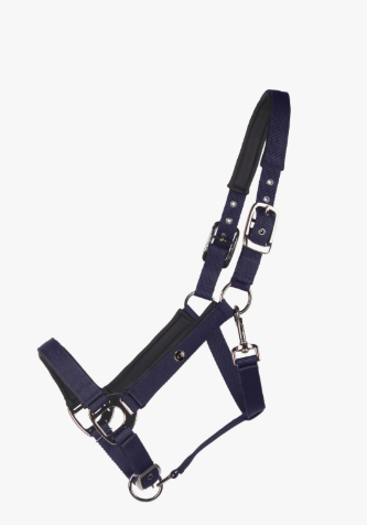 Luksuriøs grime med blødt for i nakkestykke, kinder og næsebånd. Dette sikrer høj komfort. Grimen kan justeres to steder, både på nakkestykket og på næsebåndet.