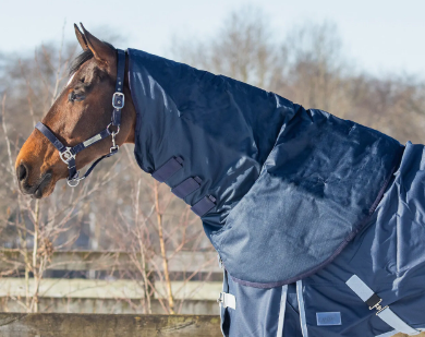 Denne hals kan universelt fastgøres til dækkener med fastgørelsesringe ved halsen.