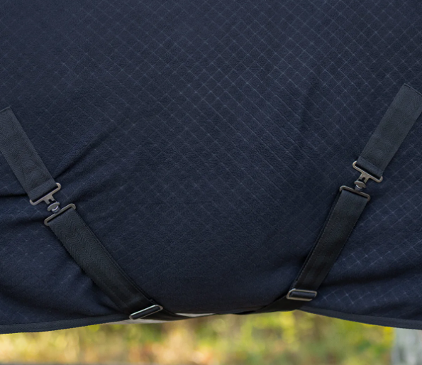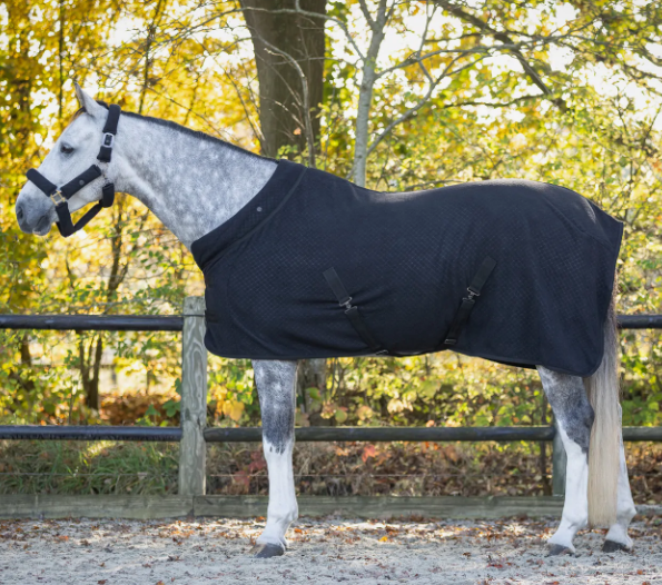 Luksuriøst showdækken fra Zahra-kollektionen med et stilfuldt mønster og matchende krave. Inkluderer et QHP-logo, dobbelt lukning foran, justerbare gjorde og en nylonindsats ved brystet for at forhindre gnaven.